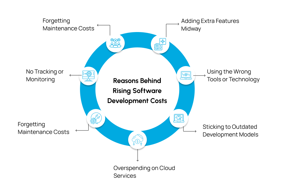 Software development costs often rise when projects lose focus or lack proper planning. Adding features midway, choosing the wrong tools, relying on outdated models, or hiring the wrong team can quickly inflate budgets. Without tracking progress, accounting for maintenance, or controlling cloud spending, expenses spiral out of control, turning a manageable project into a costly challenge.