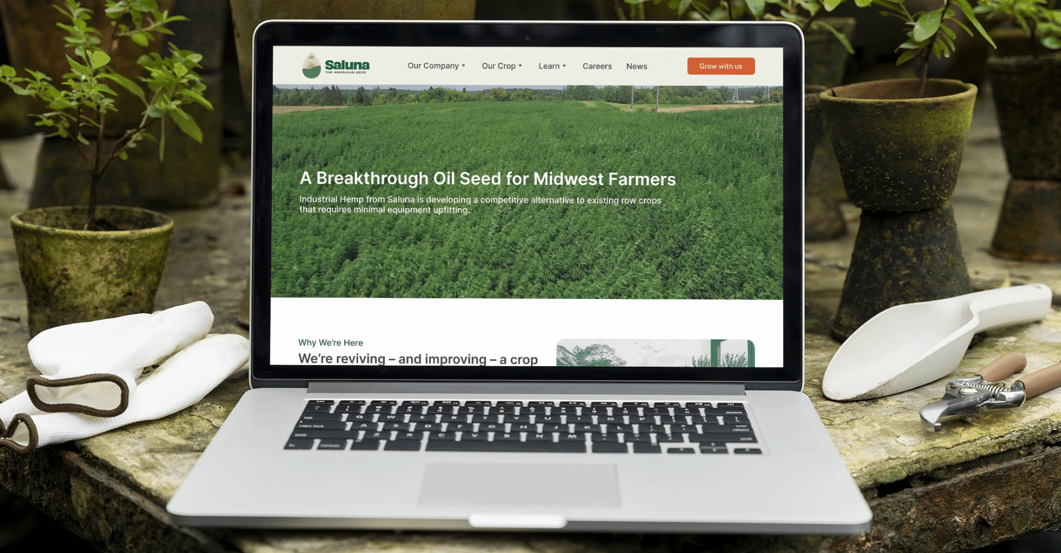 Saluna, an agricultural research company, promotes industrial hemp as a superior alternative to traditional seeds like corn and soybeans. Targeting Midwest and Southern farmers, Saluna highlights hemp’s higher yields. However, there is a stigma around Hemp since it is often viewed as analogous to its sister THC. They were in need of a website that aims to educate and encourage farmers to adopt hemp, showcasing its benefits and clarifying misconceptions.